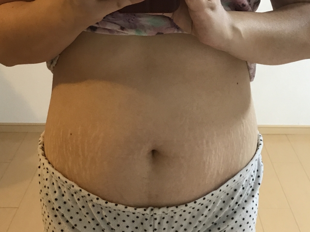 でも1ヶ月を過ぎた頃からお腹にうっすら縦線が!