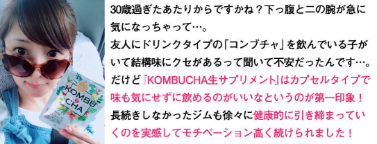 すると…コンブチャ?痩せ菌?代謝が上がる…?気になる記事を発見。ほかにも色んな方がSNS上でコンブチャの話をしていて、実際に「10㎏以上痩せました!」といったような成功事例もたくさん見かけました。