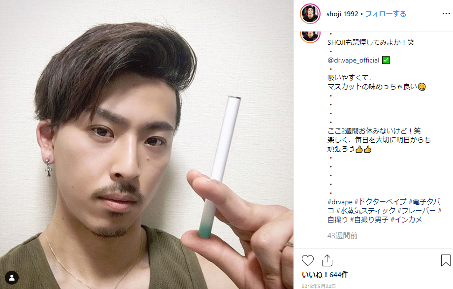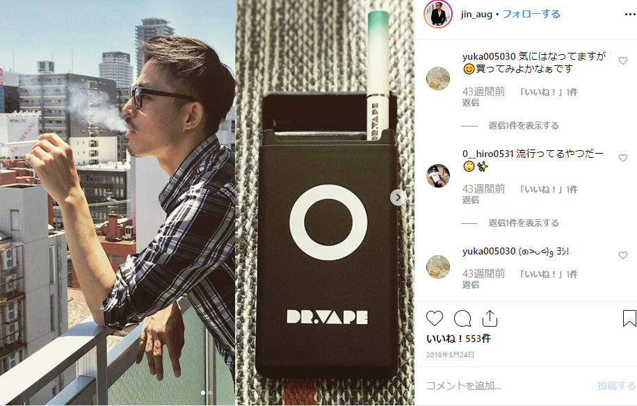 お酒が大好きでよく飲みに行くのですが、地元の友だちは喫煙者が多く、お酒とタバコの組み合わせになんとなく憧れがありました。かわいい子がタバコを吸ってるとおしゃれでかっこいい~!と思っていたのですが、本物のタバコは肌に悪いことも考えるとどうしても吸う気になれず・・・。インスタで好きなモデルさんがDR.VAPEを紹介していたので購入しました☆見た目も超かわいいのでお気に入りです♡
