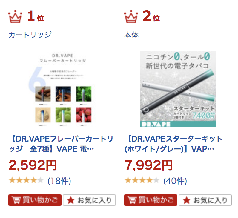 このDR.VAPEですが、なんと楽天ランキングでも1位・2位を独占したことがあるくらいめちゃくちゃ売れています!